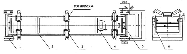 | 1:承重架 2:稱重橋 3:托輥架及托輥 4:測速機(jī)構(gòu)及測速傳感器 5:荷重傳感器 6:皮帶輸送機(jī)并配有JL500B稱重控制儀表 | |||||||||||||||||||||||||||||||||||||||||||||||||||||||||||||||||||